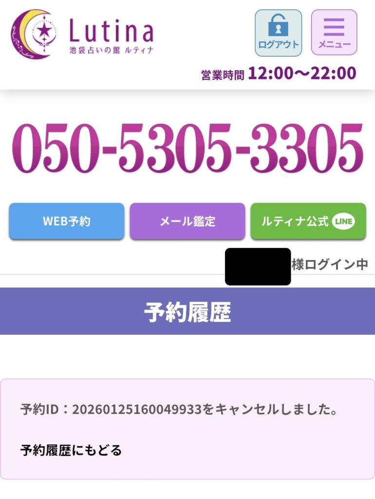 電話占いルティナは、東口店、西口店ともに会員専用ページからの退会はできません。