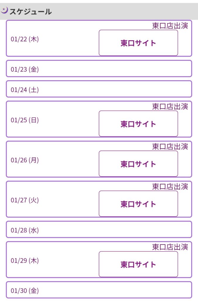 占い師の個人ページへ移動します。下の方にスケジュールがあるのでスクロールしましょう。